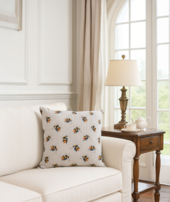 These enchanting square cushion covers would enhance most modern day interiors, with there natural beige base and an all over bumblebee print in it's natural black and yellow colours.  These light, modern square zipped cushions offer comfort whilst enhancing the look of your interior.